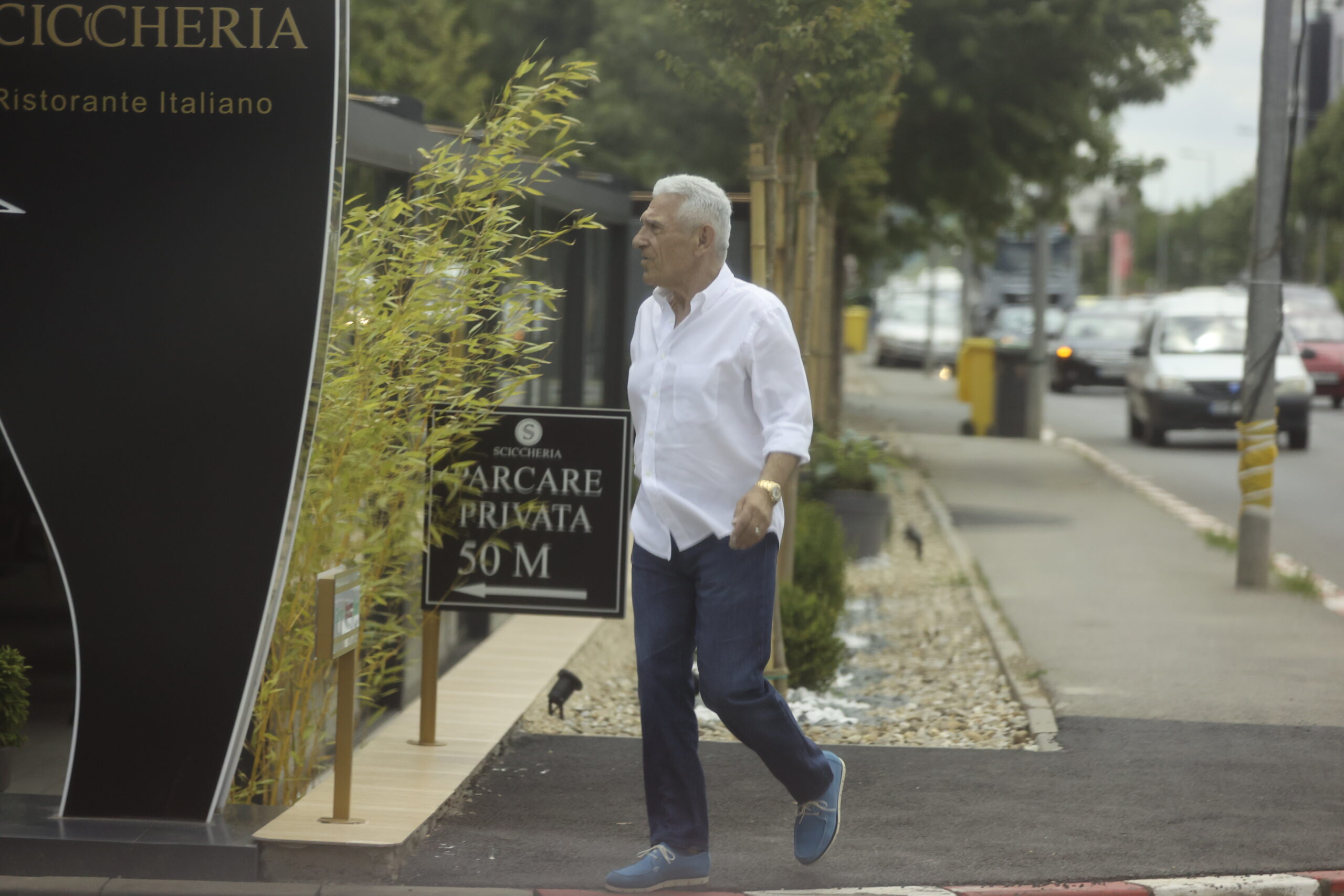 Ca un veritabil italian s-a purtat cel căruia apropiații îi spun ”Giovi”. Cămașă albă relaxată, pantaloni drepți, pantofi bleu și – piesa de rezistență – un Rolex de aur de multe zeci de mii de euro – așa și-a primit impresarul invitații.