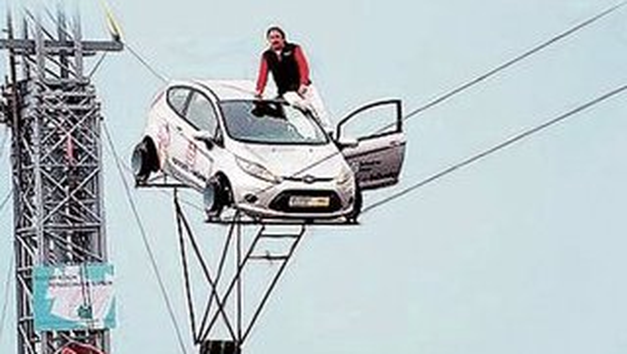 Cand germanul Johann Trauber, in varsta de 55 de ani, isi pune ceva in minte nu are liniste pana visul nu i se transforma in realitate. In urma cu cateva zile, barbatul a reusit sa isi depaseasca un record personal, stabilit in anul 2004, in fata a zeci de fani adunati la periferia orasului Freiburg. Mai exact, Johann a izbutit sa parcurga 120 de metri la volanul automobilului personal, un Ford Fiesta, suspendat pe doua franghii la 20 de metri deasupra solului. Daca in urma cu sase ani Trauber a facut aceeasi cascadorie, dar nu a condus decat cu 15 kilometri la ora, de data aceasta, germanul si-a imbunatatit considerabil performanta. Viteza pe care a inregistrat-o acum a fost de 37,3 kilometri pe ora. „Sunt foarte fericit de performanta pe care am realizat-o. Cred ca sunt cel mai rapid sofer din lume care si-a pus vreodata in minte sa conduca masina suspendat pe niste franghii si a si reusit sa faca asta”, a declarat, fericit, Trauber, la finalul ineditei incercari.