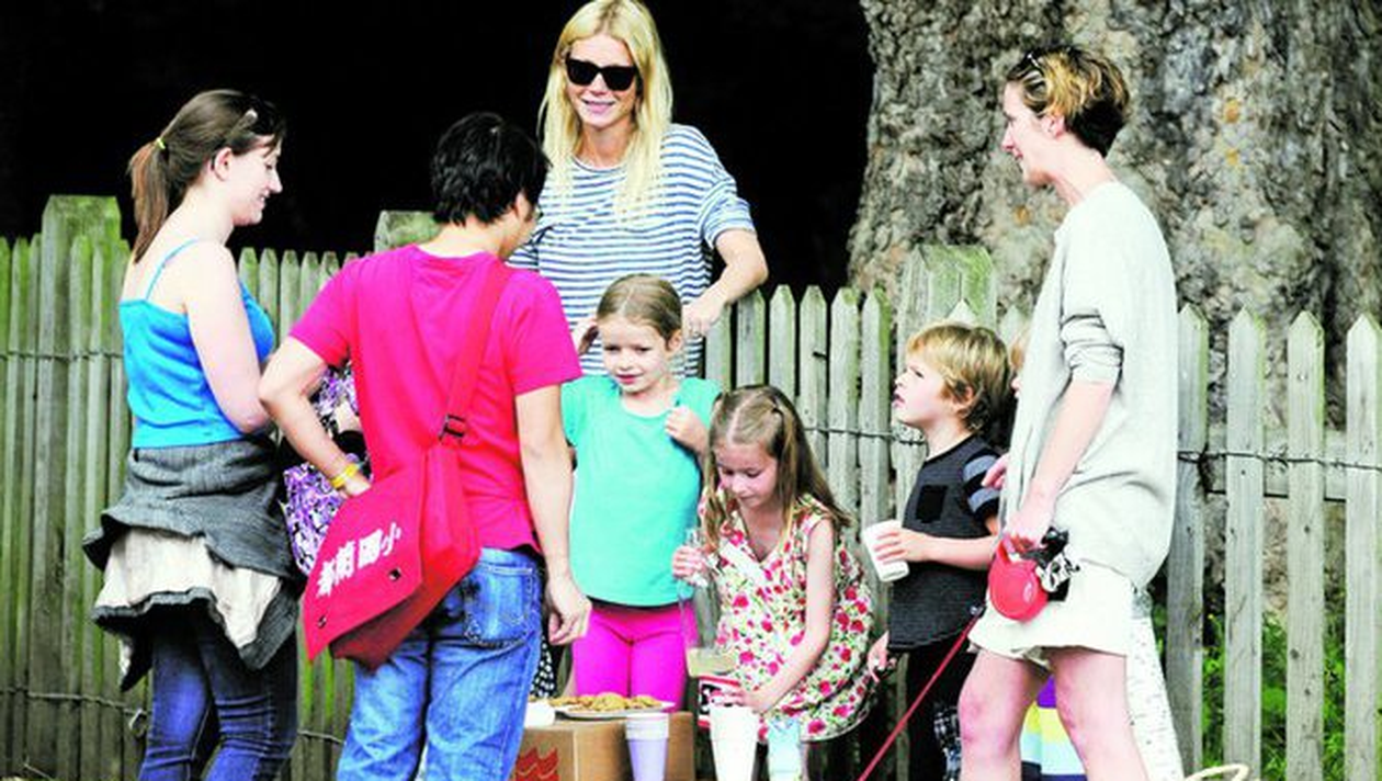 Actrita Gwyneth Paltrow a iesit cu copiii pe marginea drumului pentru a vinde limonada si fursecuri trecatorilor.