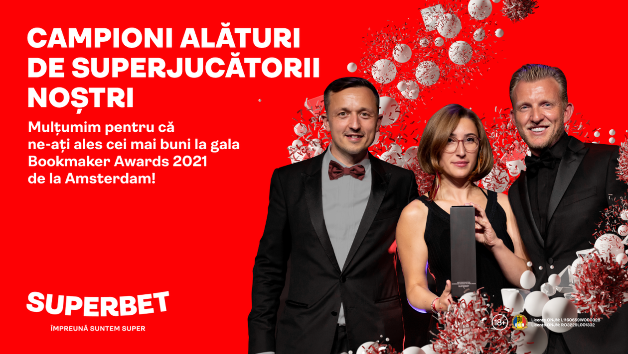 Seară magică pentru operatorul de pariuri sportive și jocuri de cazinou numărul 1 în România, distins cu trei premii la gala organizată de Better Collective. O seară care a confirmat atât aprecierea de care se bucură Superbet pe plan intern din partea jucătorilor, cât și progresele pe care le face pe plan internațional, unde este tot mai vizibil și unde ajunge un nume tot mai respectat de competiție și bineînțeles, mai des luat alături de jucători, pe post de partener de joc.