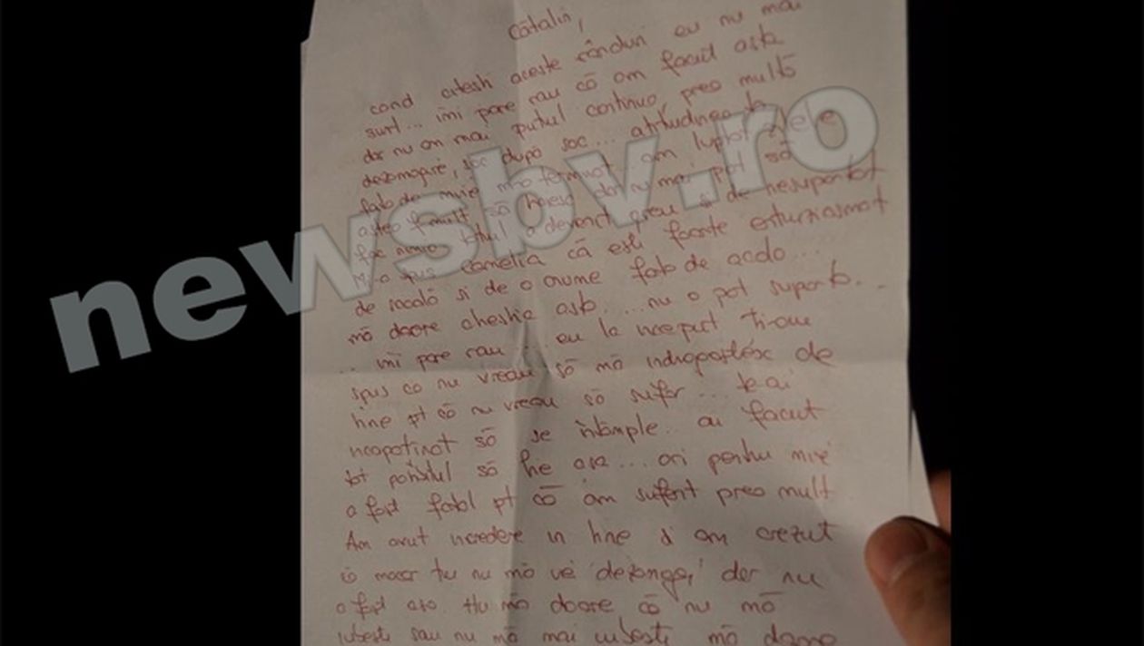 Tot din scrisoarea de adio aflam ca femeia suferea din dragoste. „…esti foarte entuziasmat de scoala si de o fata de acolo, ma doare chestia asta, nu pot suporta… Eu la inceput ti-am spus ca nu vreau sa ma indragostesc de tine. Te-ai incapatanat sa se intample… Am avut incredere in tine si am crezut ca macar tu nu ma vei dezamagi…”, a mai scris sibianca.