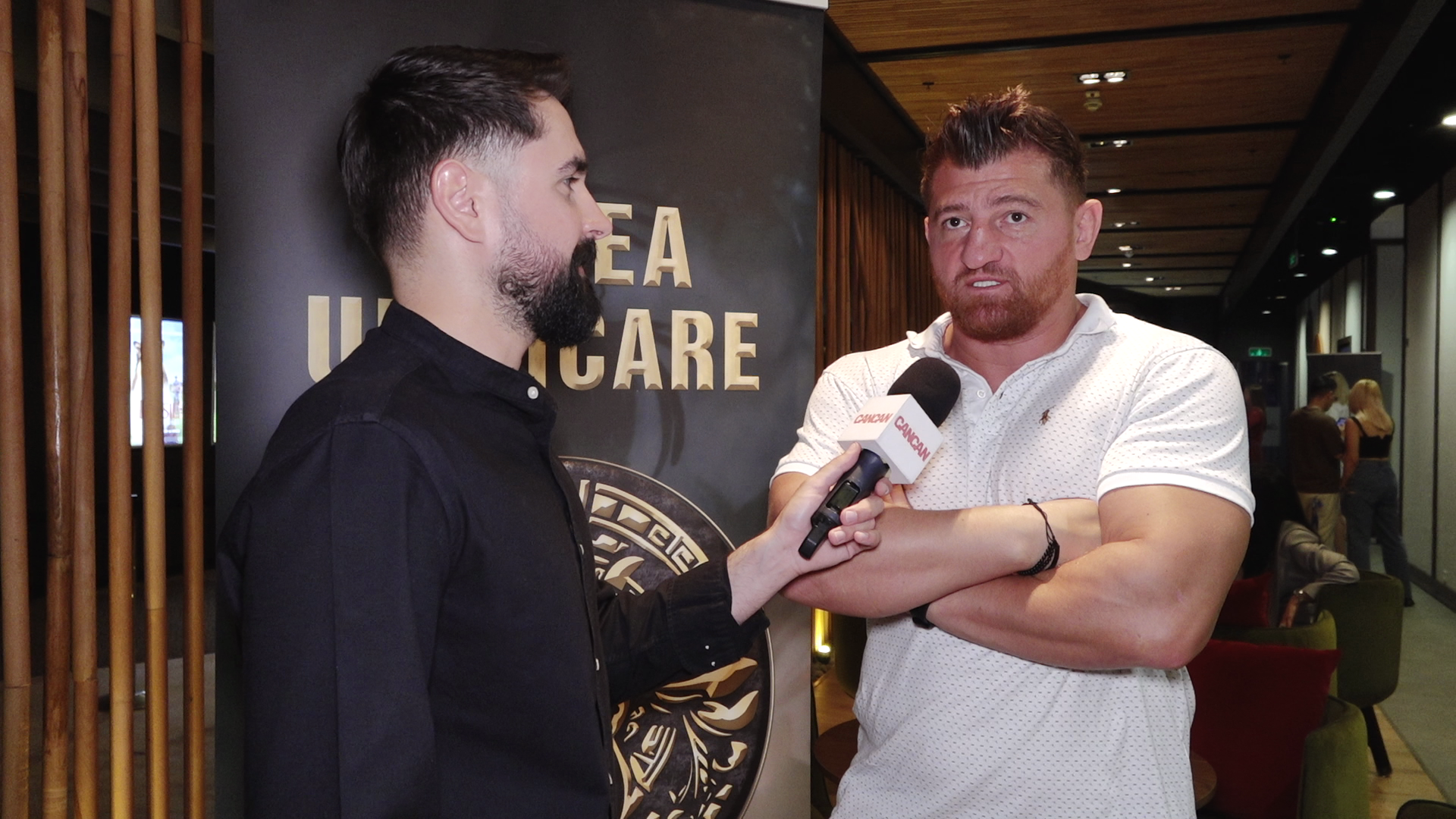Cătălin Moroșanu: Clar că te ajută. Dar eu am ajuns dintr-o întâmplare la televizor. Un moldovean de la Iași, de 86 kg, m-am luptat într-o gală, m-a văzut promotorul. La un moment dat, m-au invitat dintr-o întâmplare să promovez meciul la Măruță, m-a văzut Mona Segall și de acolo m-a luat. Nu mi-am imaginat în viața mea că o să apar la televizor sau o să fiu persoană publică. Așa mi-a dat viața, eu nu m-am gândit.
