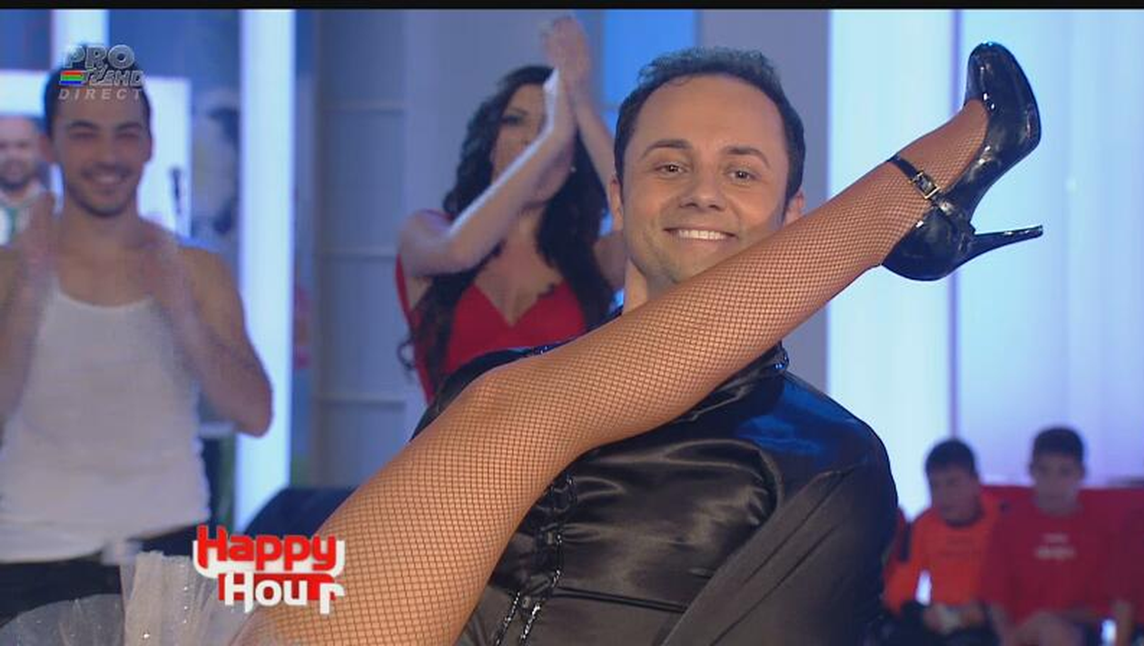 După ce a pierdut pariul cu Andreea Tonciu, prezentatorul de la "Happy Hour" a fost obligat să danseze, lucru pe care el nu l-a mai făcut niciodată.