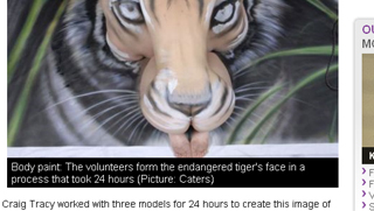 Tracy picteaza pe modele goale, iar una dintre cele mai interesante opere ale sale este cea care intruchipeaza un tigru pe spatele a trei fete dezbracate. 24 de ore i-au trebuit pentru a-si definitiva creatia, dupa ce in prealabil si-a pictat un model a cum va trebui sa arate tigrul.