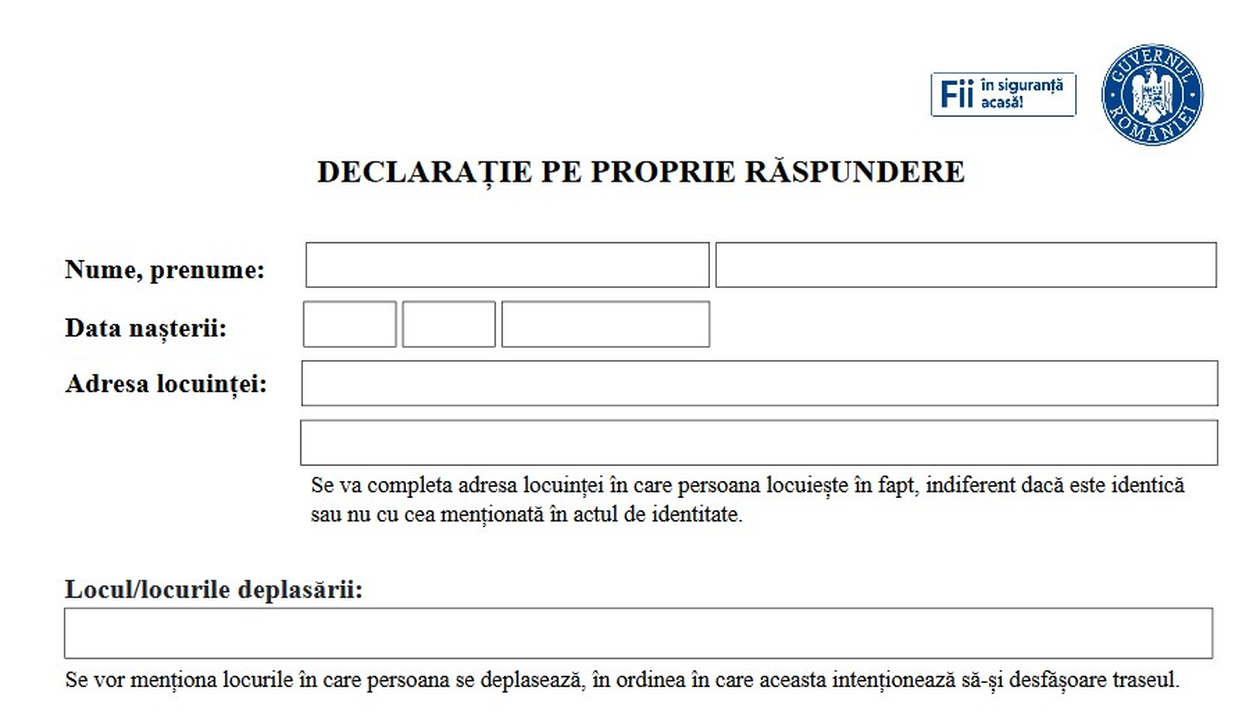 Pe site-ul pus la dispoziție de STS există varianta ”în alb” a declarației pe propria răspundere, iar ea poate fi completată foarte ușor.