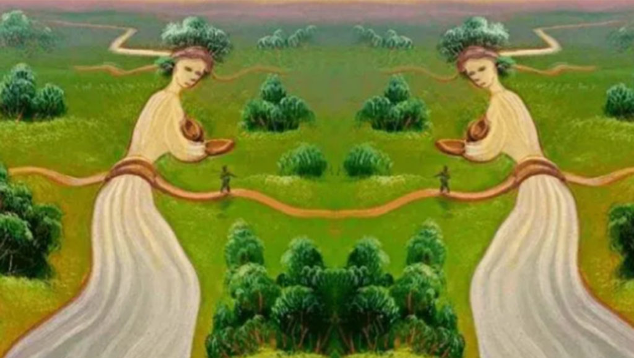 In imaginea de mai jos veți putea observa două râuri care curg, însă, de asemenea, există mai multe detalii pe care oricine le poate vizualiza din prima. Totuși, în imagine va apărea și un element ascuns, care, va putea fi descoperit cu greu. Pentru fiecare figură în parte, există o explicație pe care o veți descoperi în cele ce urmează.