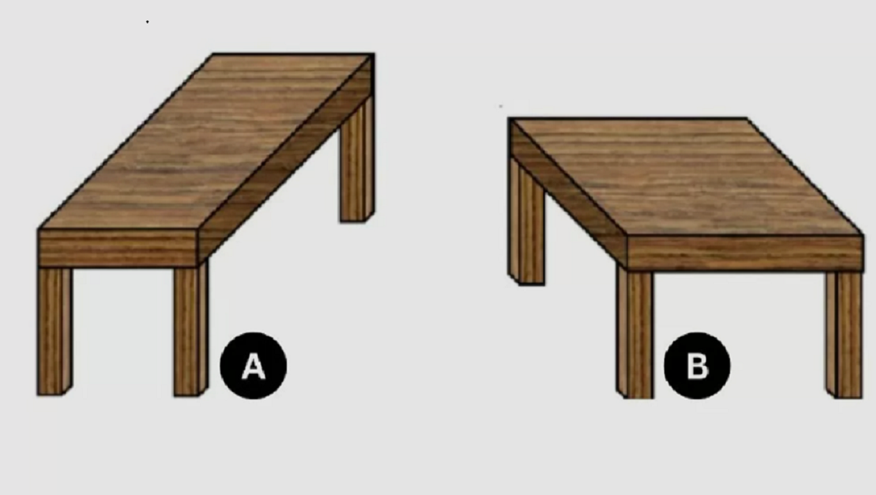 În imaginea de mai sus, puteți observa două mese care par să aibă dimensiuni diferite. În timp ce una are lungimea mai mare, cealaltă este mai lată. Astfel, trebuie să urmăriți cu atenție și să încercați să vă dați seama care masă este mai mare.