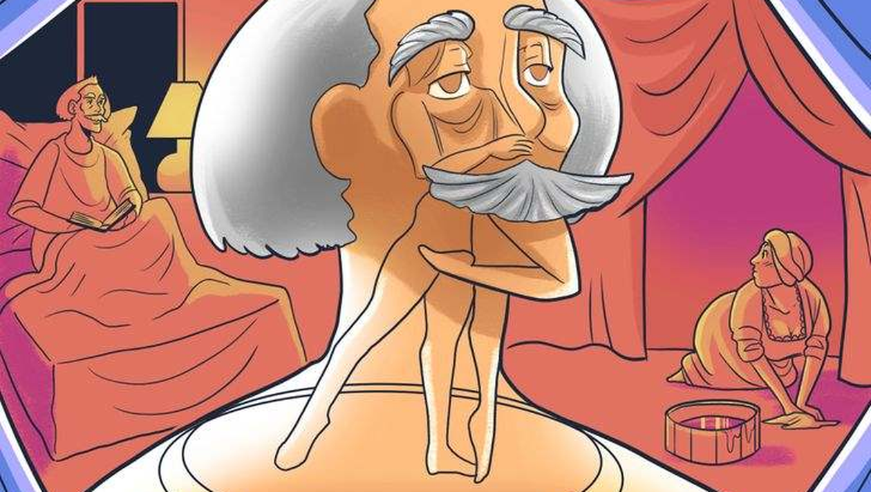 În imaginea de mai sus pot fi observate patru fețe: chipul unui bărbat cu mustață, cuplul care dansează, fața unui bărbat care stă în pat și chipul unei servitoare. Pentru fiecare în parte exită o interpretare.