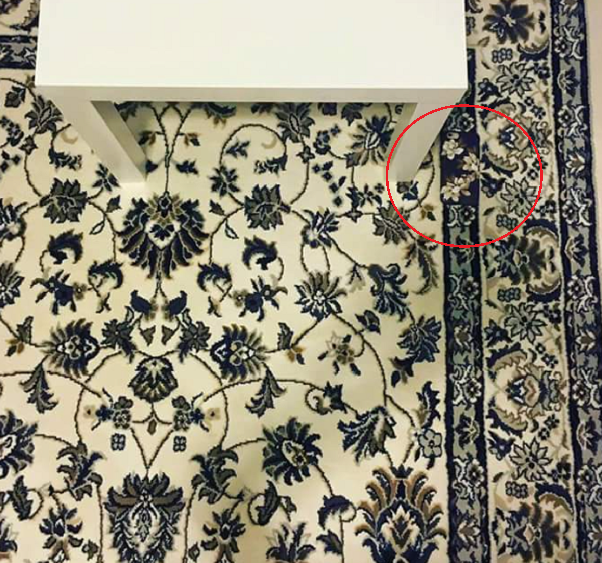 REZOLVARE: Obiectul este complet camuflat. Tot ceea ce trebuie să faci este să urmărești linia verticală din dreapta a covorului și vei repera imediat telefonul. Este chiar lângă piciorul mesei. Felicitări pentru cei care au reușit să rezolve această iluzie optică.