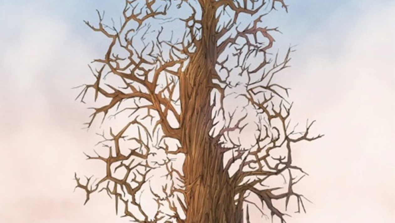 În imagine, apare un copac mare cu foarte multe crengi, care stau în diferite direcții. Printre ele se află ascunși cei trei iepuri, însă trebuie să fiți foarte atenți. Îi puteți vedea? Priviți cu atenție poza de mai jos și găsiți animalele!