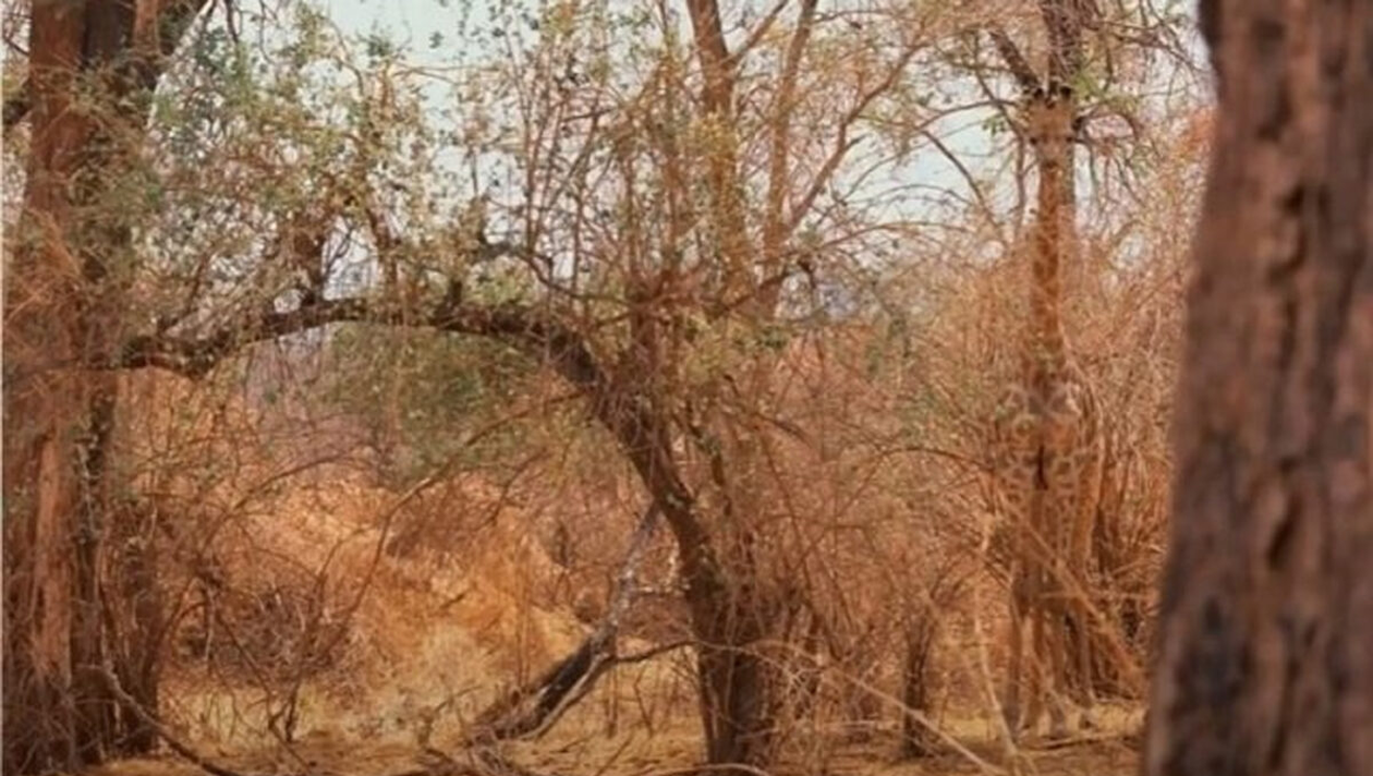 Cromatica prezentă în tabloul natural te poate păcăli, pentru că nuanțele girafei sunt foarte apropiate de cele ale arborilor. Este o iluzie optică virală care îți testează capacitatea vizuală și atenția la detalii. În condițiile în care nu ai reușit să depistezi animalul, atunci noi îți sărim în ajutor. Dacă privești în partea dreaptă a fotografiei, vei constata că trupul girafei poate fi confundat cu ușurință cu siluetele copacilor. Iată dovada mai jos!