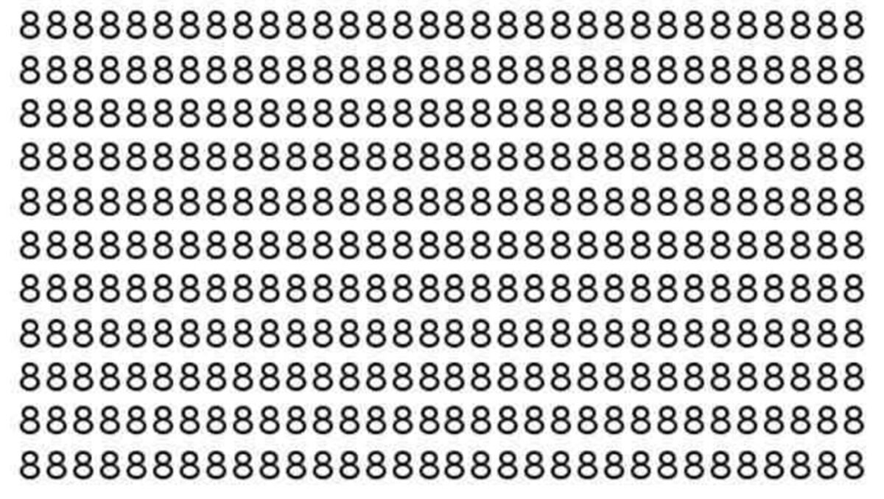 Așadar, testul propus astăzi este unul destul de greu de deslușit, cel puțin într-un timp scurt. Iar pentru a o face trebuie să te concentrezi bine și să ai claritate vizuală. În linii mari lucrurile sunt simple: în imaginea prezentată printre multitudinea de numere „8” stă ascuns destul de bine numărul „6”. Tot ce trebuie să faci este să îți dai seama unde este poziționat acesta. Și timpul în care ai rezolvat destul este de 5 secunde. Se pare că doar geniile reușesc să ofere răspunsul corect în doar câteva secunde.