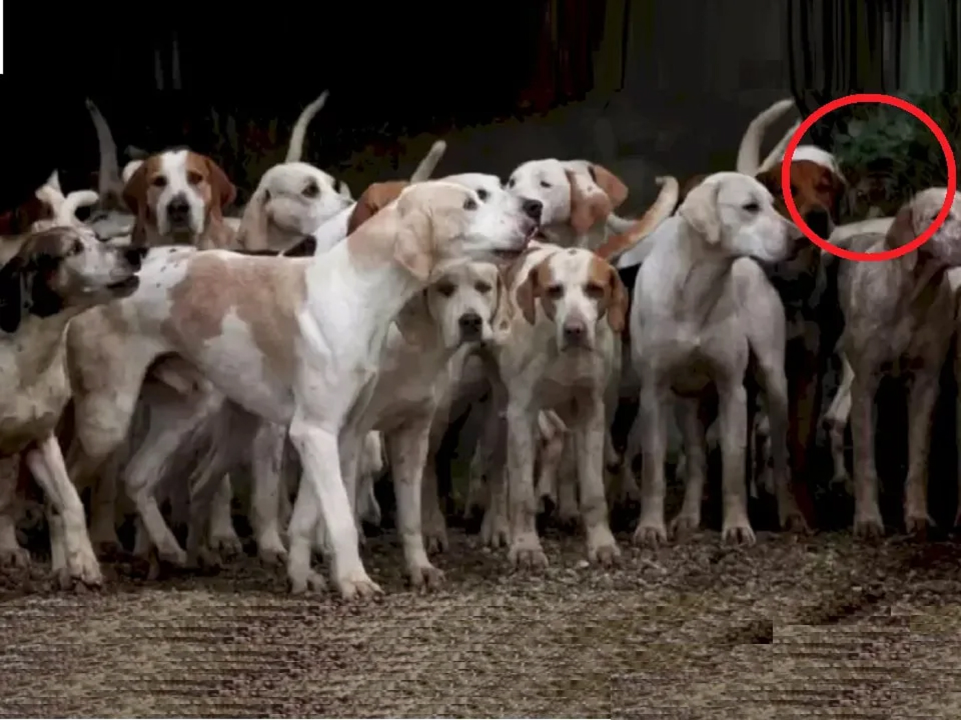 Dacă te-ai uitat atent și tot nu l-ai găsit, noi îți vom arăta unde se ascundea tigrul în această fotografie în care vezi o mulțime de câini. Felina o vei găsi în partea dreaptă a ilustrației, în spatele turmei de câini. Iată locul exact în care stătea acesta ascuns.
