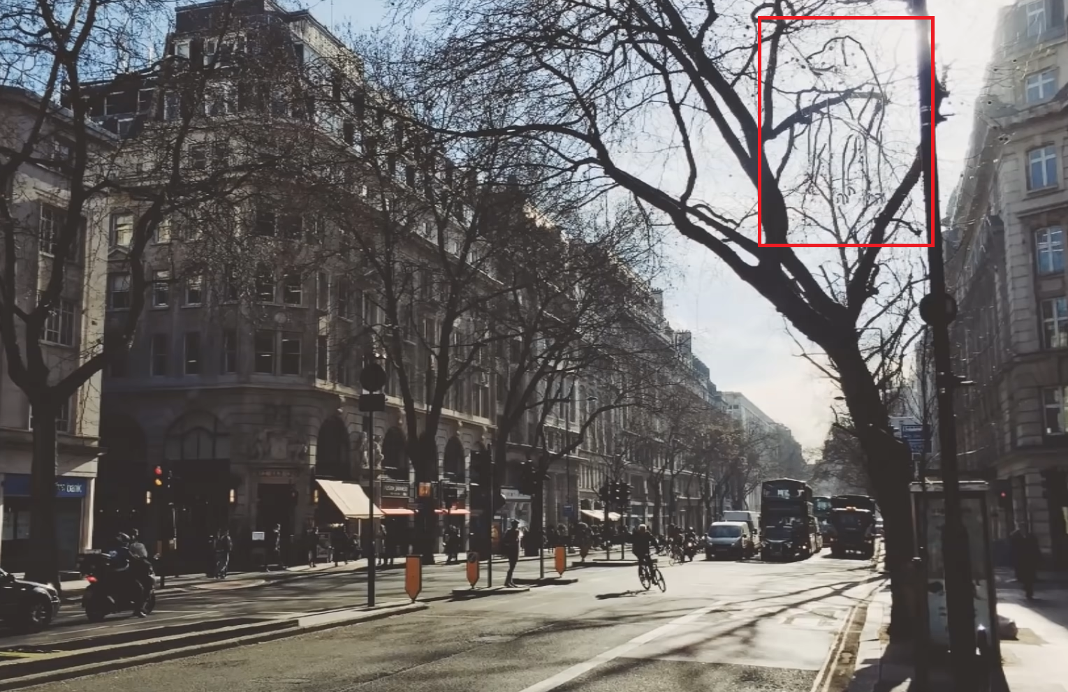 Trebuie să priviți cu atenție imaginea de mai sus. Fiecare detaliu din fotografie este important, mai ales pentru a descoperi unde se află câinele. În imaginea respectivă, poate fi observat un bulevard cu mașini, clădiri, oameni și copaci. Însă, unde se află câinele?