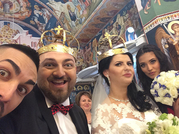 Cei patru au facut un selfie chiar in fata preotului din biserica. Cel care a facut publica imaginea a fost chiar Boier Bibescu, finul lui Velea.