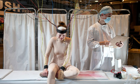 Jacqueline Traide a fost chinuită sub ochii măriti de groază ai sutelor de clienti din mall-ul respectiv.Timp de 10 ore, tânăra a acceptat să fie hrănită cu forta, tunsă si supusă unor experimente dureroase. Totul, in cadrul unei campanii menite să oprească testarea produselor pe animale.