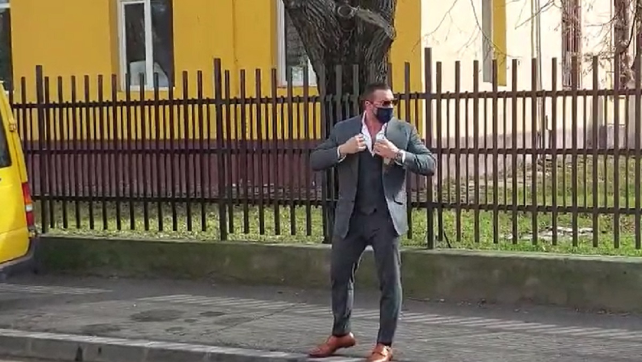Nici într-un astfel de moment critic, Alex Bodi nu a uitat de eleganță. Musculosul a pus pe el un costum gri, la care a asortat o cămașă albă și o pereche de pantofi maro deschis, dar și o pereche de ochelari de soare. Pentru că respectă normele impuse de autorități în context epidemiologic, Alex Bodi și-a pus masca imediat după ce a coborât din mașină.