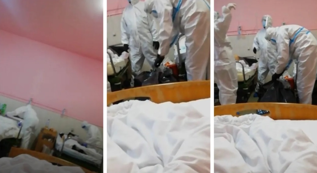 Imagini șocante, surprinse în Arad. O pacientă decedată recent de COVID-19 este pusă într-un sac de medici, chiar în fața celorlalți pacienți, în salon. O femeie a filmat totul și a postat pe o rețea de socializare.