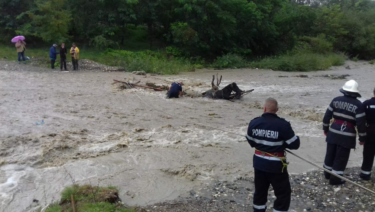 O viitura puternica i-a surprins pe cei trei barbati in comuna Poienarii de Muscel, satul Arsenesti. Oamenii s-au speriat si au sarit in apa reusind sa iasa pe uscat. Caruta trasa de doi cai a fost luata de viitura. Au sunat de urgenta la 112 si un echipaj de la ISU Arges a intervenit in zona.