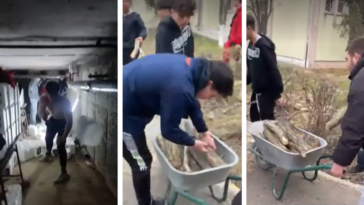 Imaginile revoltătoare au devenit virale pe internet! În filmare se vede cum mai mulți elevi se află într-un subsol, acolo unde încearcă să mute câteva bidoane care, cel mai probabil, conţineau substanţe dezinfectante. În alte imagini apar alţi elevi care debarasează lemne din curtea liceului.