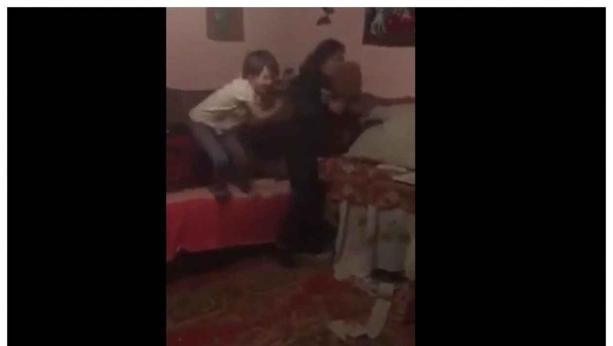 În imagini se poate observa cum femeia este lovită cu o bâtă de lemn în cap, iar apoi începe să plângă. Lacrimile femeii nu sunt suficient de puternice pentru a-i face pe minori să se oprească, ba chiar sunt amuzați și își schimbă obiectul cu care o lovesc. De la parul de lemn, minorii trec la o nuia cu care își lovesc mama peste față, timp în care tatăl acestora nu face nimic pentru a stopa violențele, ba chiar îi instigă pe băieți.