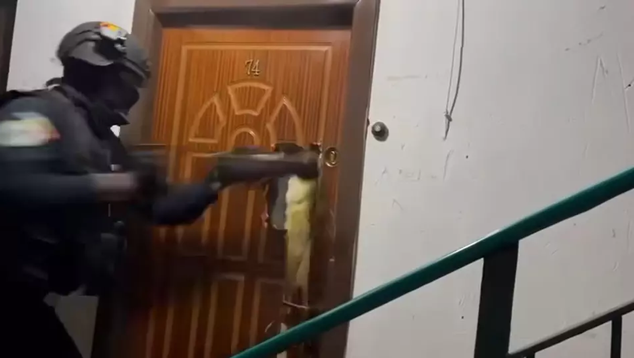 În imaginile publicate pe pagina oficială de Facebook a Poliției Române se poate observa cum mascații sparg ușa unui apartament. Totul a avut loc într-o acțiune a DIICOT împotriva criminalității organizate.