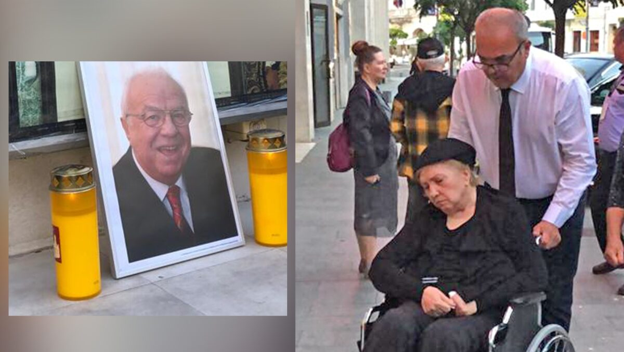 Într-un scaun cu rotile, distrusă de durere, soția maestrului era condusă de fiul său la căpătâiul „jumătății” sale.
