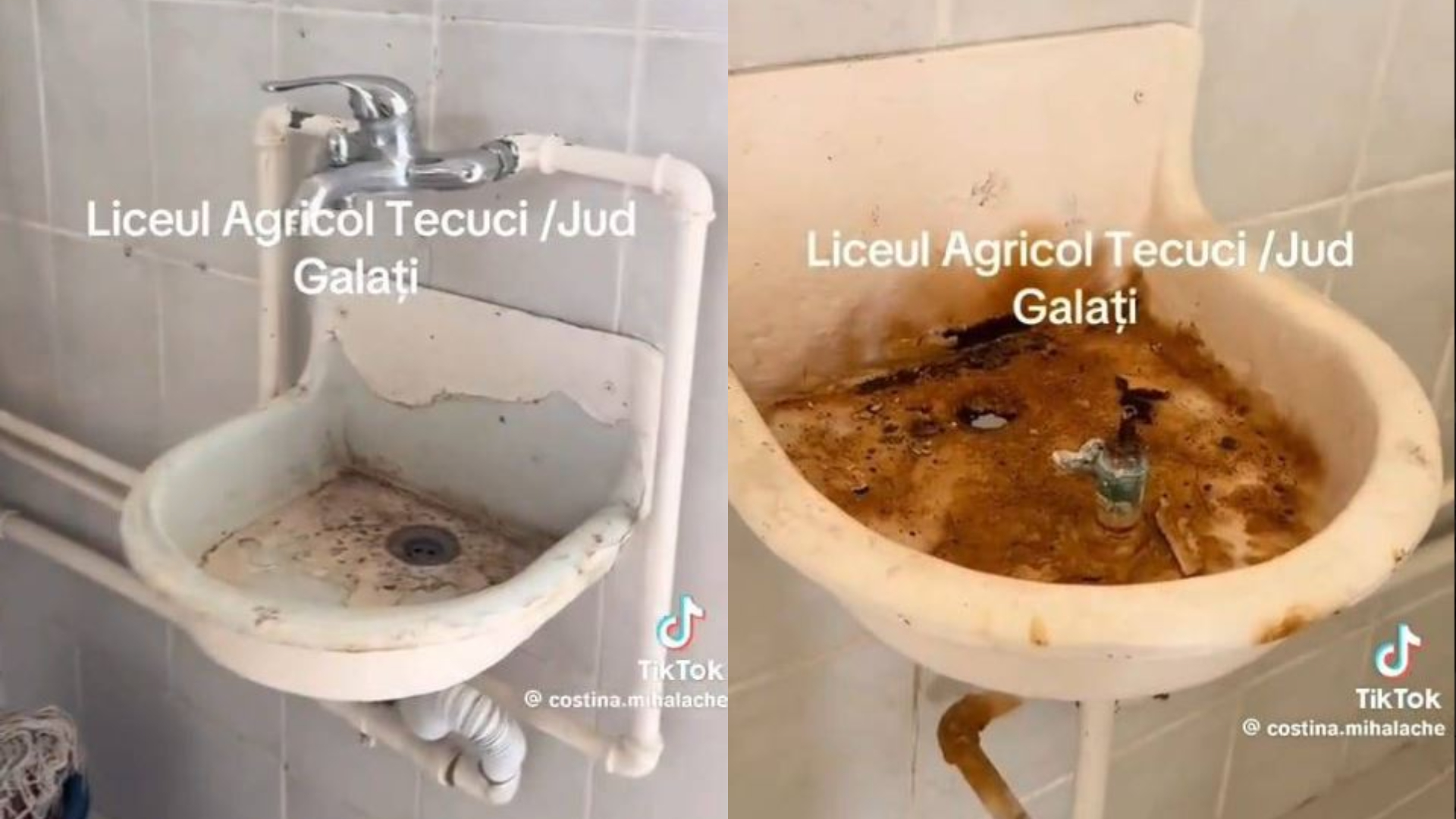 Recent, mai multe imagini greu de privit din băile Colegiului Național de Agricultură din Tecuci, județul Galați, au ajuns în spațiul public. Elevii sunt nevoiți să îndure condițiile vitrege di grupurile sanitare: wc-uri turcești ruginite, zone cu mucegai, chiuvete care nu funcționează și mizerie.
