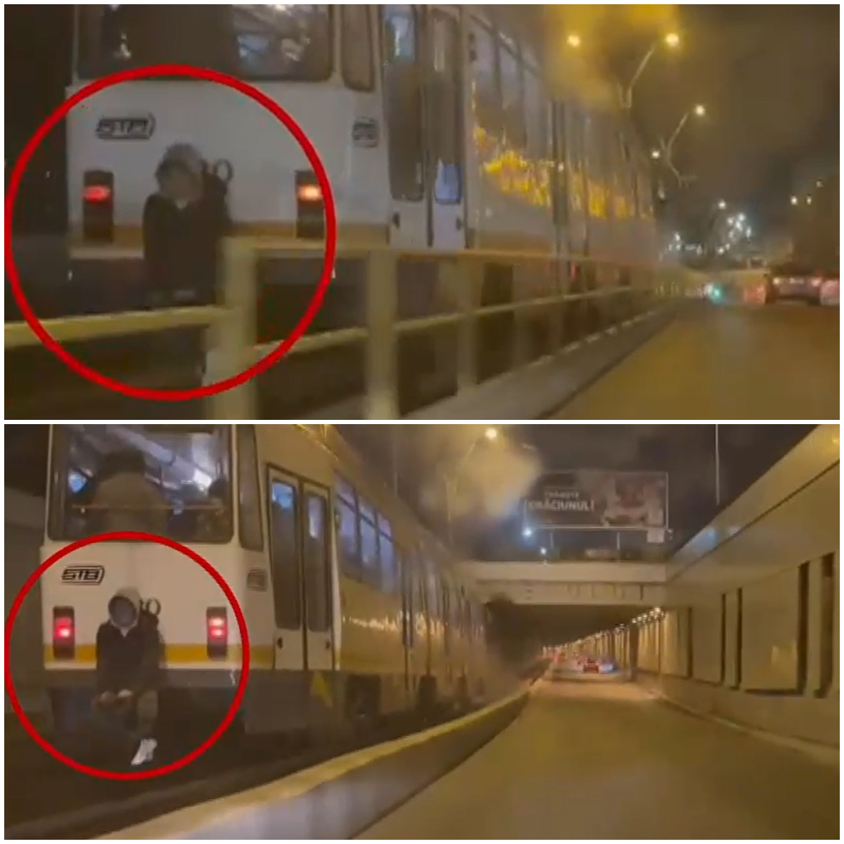Tânărul care a făcut o asemenea ”grozăvie” a riscat mult, căci, în orice moment, ar fi putut să cadă de pe partea exterioară a tramvaiului. Imaginile au fost surprinse în zona Pasajului Lujerului. De asemenea, prezența tânărului în partea exterioară a fost sesizată și de unul dintre călătorii aflați în tramvai, uitându-se pe geamul din spate.