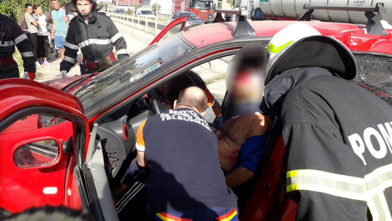 La fața locului au intervenit pompierii, o ambulanță SMURD și medicii de la Serviciul de Ambulanță Județean. Unul dintre pasagerii din autoturism a rămas captiv între fiarele contorsionate.