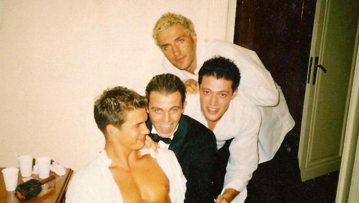 Victor si prietenii sai au purtat la unison tricouri si camasi albe
