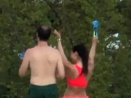 Cei doi au fost fotografiați la piscină, acolo unde se afla și fiul lor, Davin, care putea, teoretic, să-i vadă în orice moment. După acest episod pasional, Călin Geambașu și fosta logodnică s-au relaxat în prezența băiețelului lor, împreună cu care s-au jucat și în apă.