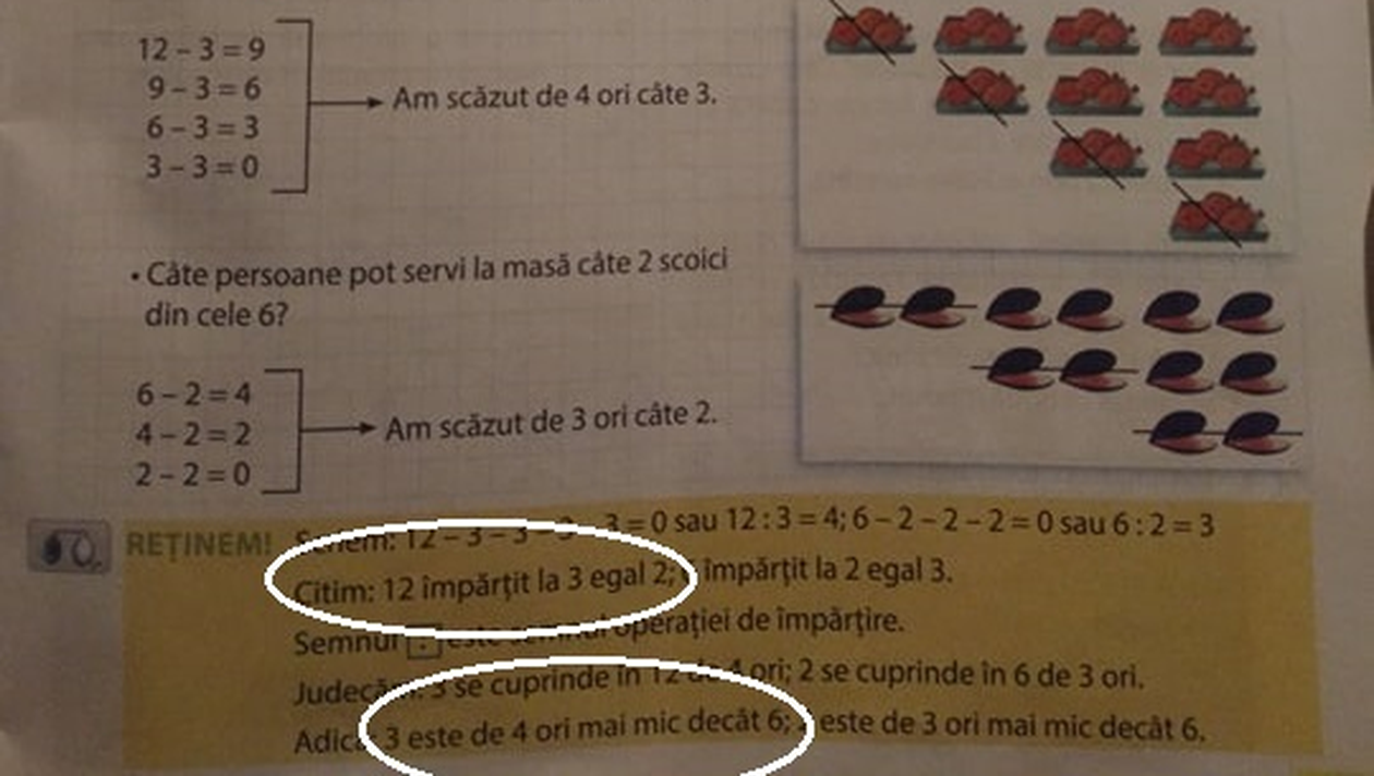 Un nou manual cu probleme, dintre cele publicate de editura Ministerului Educației. Din manualul de „Matematică și explorarea mediului” pentru clasa I, elevii învață că numărul 12 este mai mare decât 16.