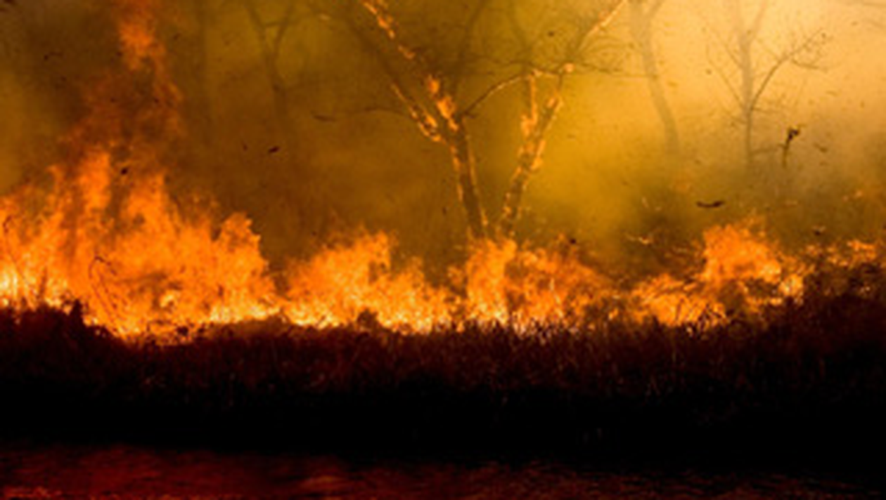 Focul a izbucnit sambata seara si a fost alimentat de rafalele de vant de peste 90 de kilometri pe ora, care impiedicau avioanele bombardiere de apa sa decoleze.