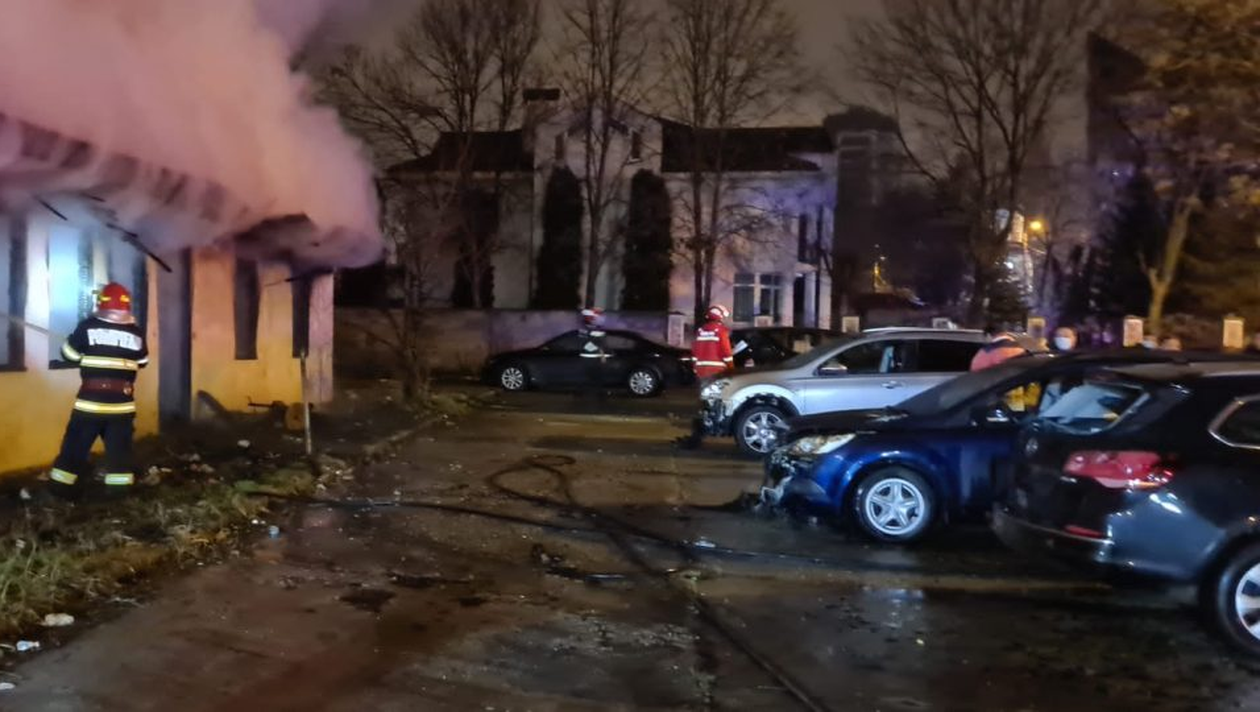 Incendiu de proporții în Slatina! 9 mașini au fost distruse, iar o clădire a ars în totalitate.