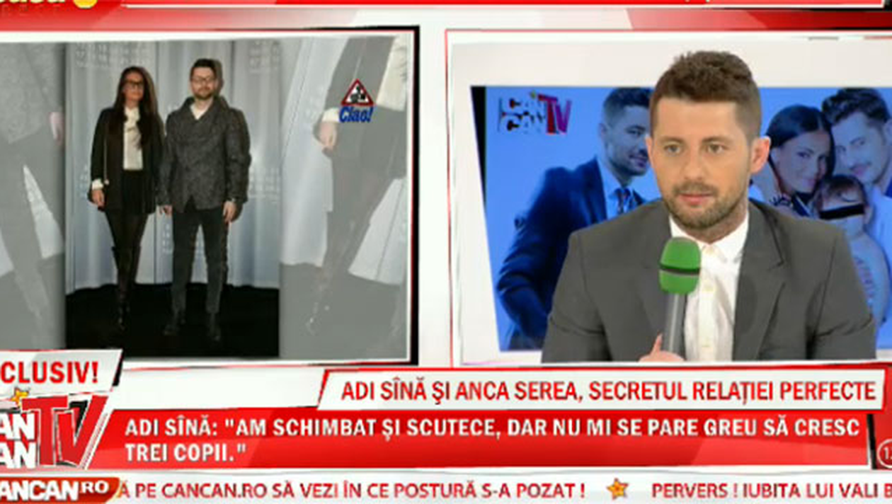 Adi Sina si Anca Serea s-au cunoscut in urma cu doi ani si impreuna au un baietel de cateva luni. Artistul a povestit in emisiunea  Cancan TV, difuzata de la ora 22:00, la Acasa TV, cum e viata lui alaturi de prezentatoarea tv si cand se vor casatori.