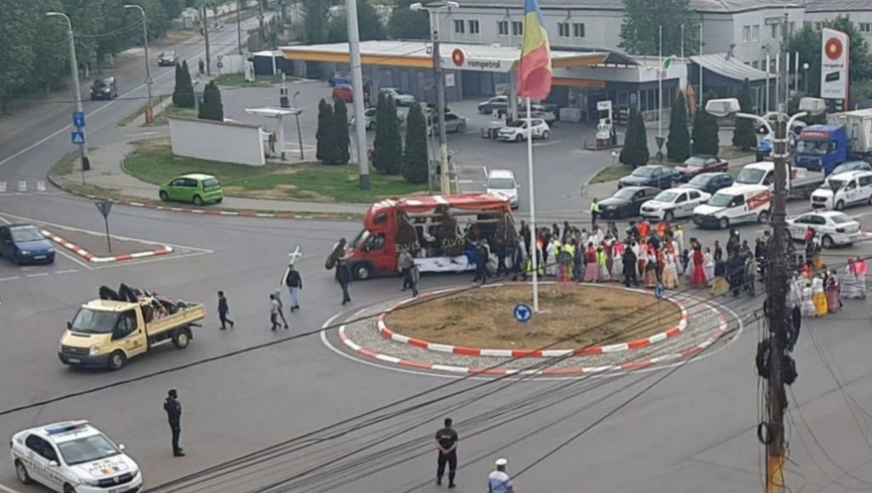 O înmormântare a unei persoane de etnie romă a creat un întreg blocaj în trafic, în Constanța. Polițiștii rutieri au fost forțați să închidă traficul pentru câteva minute, astfel încât cortegiul funerar însoțit de lăutari să poată trece.