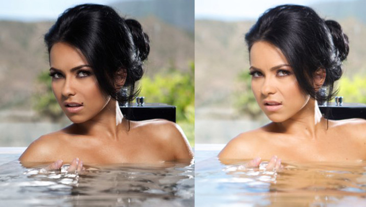 Cantareata a publicat recent pe contul ei de Facebook un portret de-al sau, in doua variante, una originala si una modificata in Photoshop. Ei bine, chiar daca oricine s-ar mandri cu varianta neretusata, Inna a simtit totusi nevoia sa „umble” un pic la luminozitate, facand astfel ca parul sa ii straluceasca mai tare, pielea sa-i fie mai bronzata si fara alunite sau alte pete, ochii sa fie mai conturati, iar apa in care se scalda sa fie mai albastra.