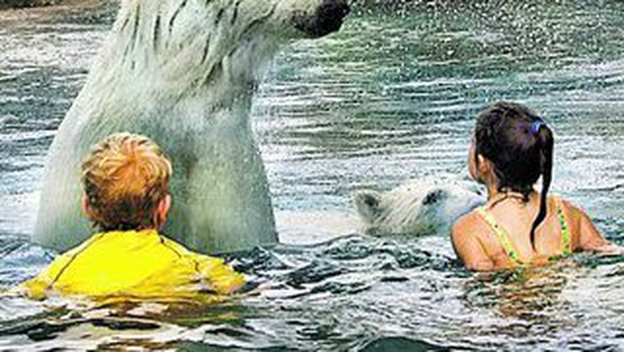 Pentru turistii care ajung in Ontario, Canada, la parcul zoo Cochrane, dedicat ursilor polari, spectacolul este cu siguranta incredibil. Un grup zgomotos de copii se pregateste sa sara in lac la fiecare cateva zeci de minute pentru o intalnire fabuloasa cu ursii polari. Urmeaza o balaceala de pomina, savurata si de micuti, si de salbaticiuni. Ceea ce pare insa de-a dreptul o nebunie, respectiv sa lasi de bunavoie un copil sa inoate alaturi de animale salbatice cu reactii greu de prevazut, nu este decat o iluzie optica. In realitate, bazinul este impartit in doua de o bucata de plexiglas groasa de 25,4 centimetri, cele doua grupuri, al oamenilor si al ursilor, neajungand niciodata sa dea nas in nas pe bune.