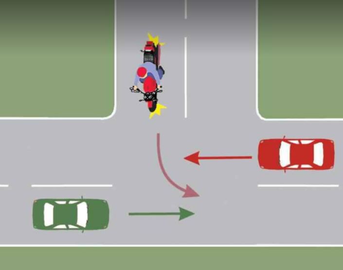Iată răspunsul și explicația: “Intersecţia este nedirijată, iar în această situaţie se va aplica regula priorităţii de dreapta. Autoturismul roşu îi va acorda prioritate motocicletei, deoarece îi vine din partea dreapta. Motocicleta îi va acorda prioritate de trecere autoturismului verde, deoarece acesta îi vine din dreapta. Ordinea de trecere este următoarea: autoturismul verde, motocicleta şi autoturismul roşu. Răspuns corect: B”.