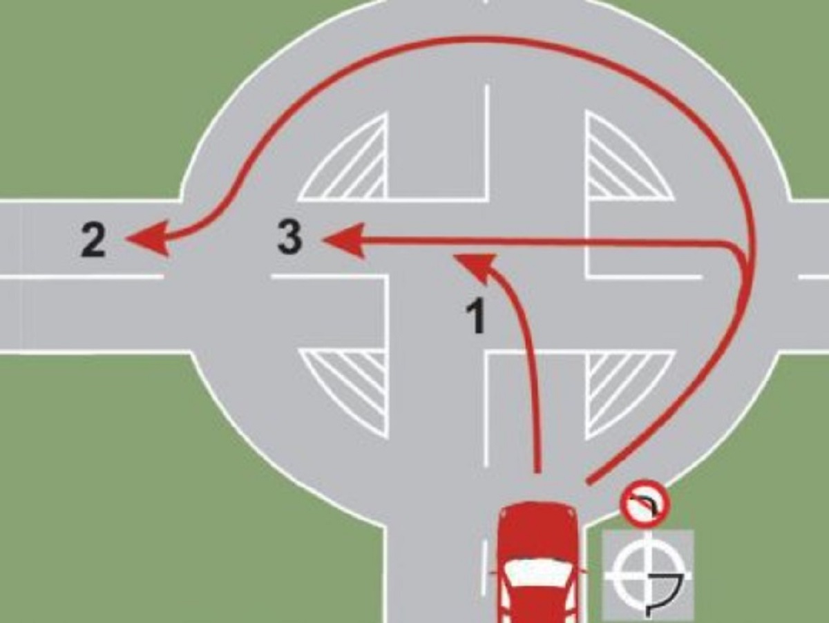 Ce traseu trebuie să urmezi ca să virezi la stânga în intersecţie?