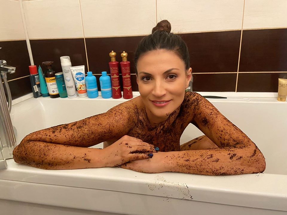 Așa a pozat Ioana, apoi a dezvăluit, în câteva rânduri, secretul. ”Mă întreabă fina mea, zilele astea, cum să facă să aibă o piele catifelată ca și mine. Păi foarte simplu: Iei zațul de la cafeaua de dimineața și-l pui pe tine seara la duș.
