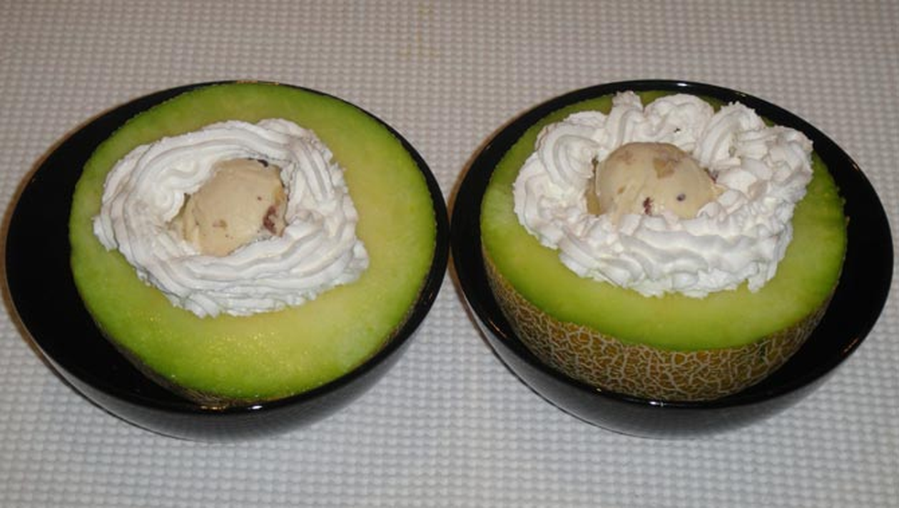 Ea mai spune ca nu este greu de preparat. „E usor de facut si nu ai nevoie decat de un pepene copt, o inghetata usoara si frisca. Se taie pepenele in doua, se curata de seminte, iar in golul format se pune inghetata, apoi se introduce timp de 15 minute la congelator. Inainte sa va infruptati din desert puteti sa-l ornati cu frisca. Pofta buna!”, a explicat Ioana etapele de preparare ale acestui desert.