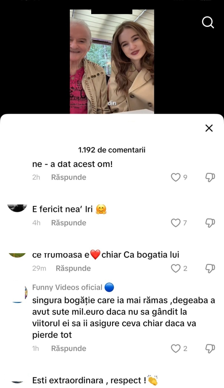„E fericit nea’ Iri”/ „Ce frumoasă e, chiar că bogăția lui”/ „Singura bogăție care i-a mai rămas. Degeaba a avut milioane de euro, dacă nu s-a gândit la viitorul ei, să îi asigure ceva”/ „Ești extraordinară, respect”, au fost câteva dintre comentariile internauților.