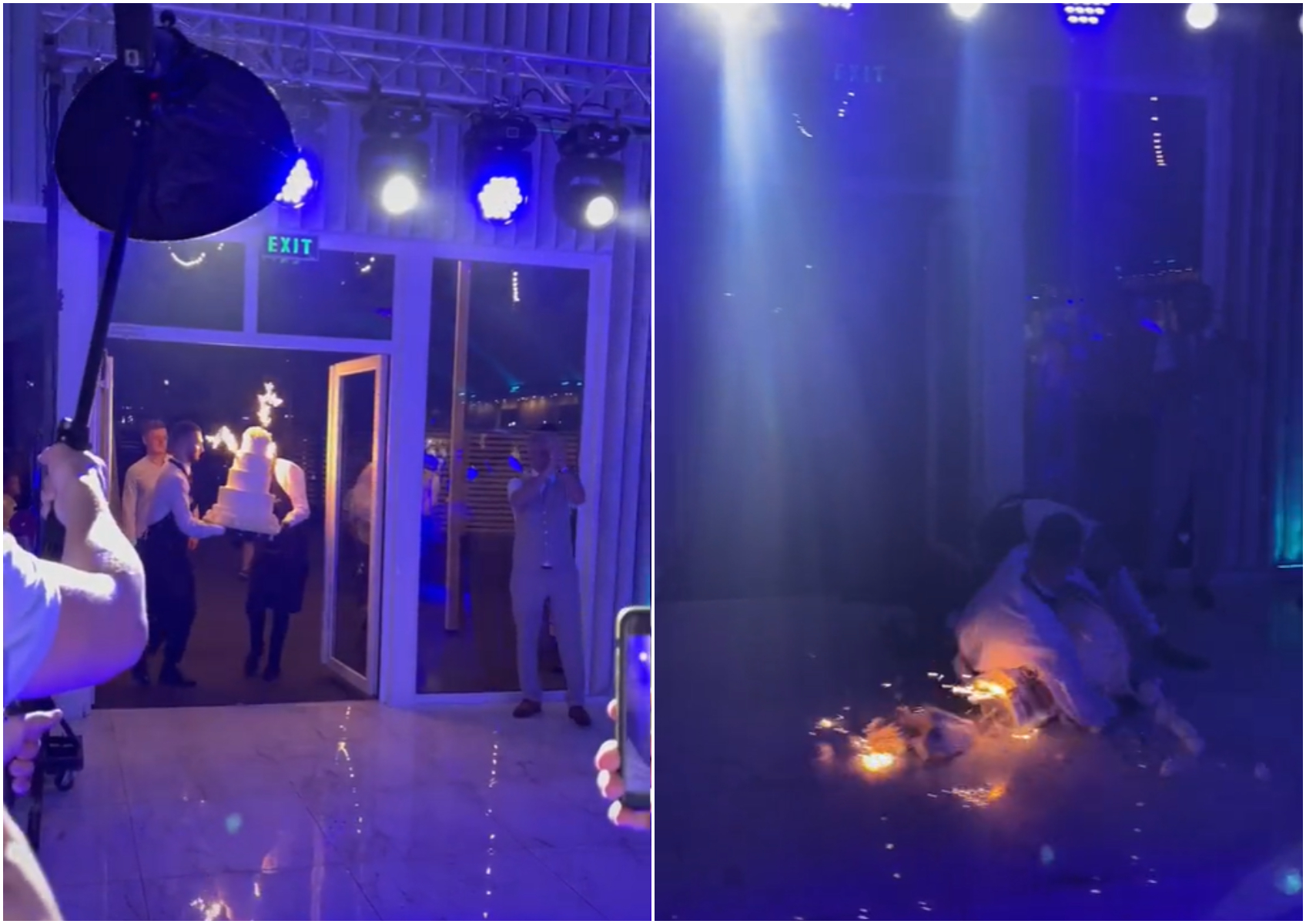 La scurt timp, personalul localului unde a avut loc petrecerea de nuntă a adus un alt tort, cu cinci etaje, iar invitații au început să aplaude.