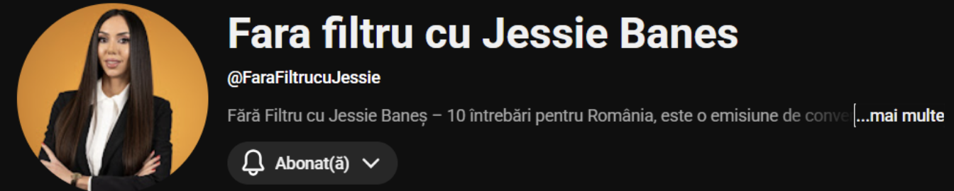 După mai multe proiecte jurnalistice, precum „Golden Hour cu Jessie”, „Dosar de candidat” sau podcast-ul „România nefardată”, moderatoarea GOLD FM Jessie Baneș lansează un nou format: „România fără filtru – cu „”, care va debuta joi, 9 aprilie 2026, de la ora 18:00. Emisiunea, cu durata de o oră, va fi disponibilă pe noul canal de YouTube Fără Filtru cu Jessie Baneș și pe toate platformele de streaming și social media, în fiecare joi, la aceeași oră.