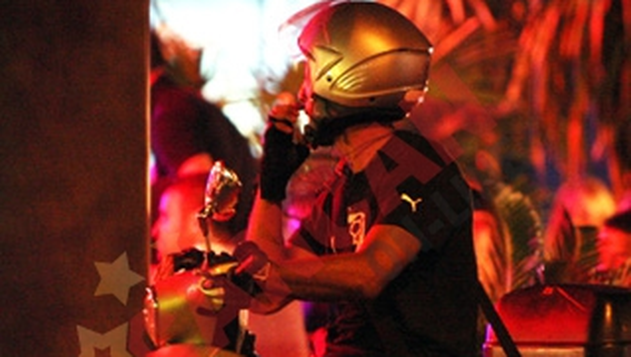 Jumatatea neagra a trupei Alb Negru a fost surprinsa de paparazzii CANCAN, zilele trecute, in jurul orei 23.00, in timp ce mergea calare pe „bolidul” sau spre o terasa situata pe Bulevardul Decebal, din zona piata Alba Iulia. Chiar daca s-a despartit de Ramona Naca, solistul nu a iesit la terasa in compania vreunei domnisoare, cel mai probabil pentru ca nu avea loc sa o aduca aici pe scuter. Si, cum prietenii la nevoie se cunosc, Kamara a zabovit la masa mai bine de doua ore, intretinandu-se cu un amic.