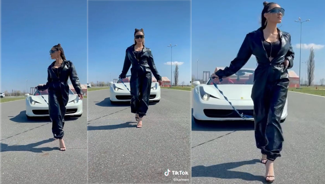 Karmen a realizat un clip senzațional pentru contul ei de TikTok, iar în imagini, apare alături de Ferrari-ul 458 Spider, pe care tatăl său îl deține. Printre numeroasele gânduri bune, artista a fost criticată dur pentru gestul său. Unii dintre internauți i-au transmis că ar fi trebuit să spună de la ce influenceriță moldoveancă a preluat ideea pentru video.