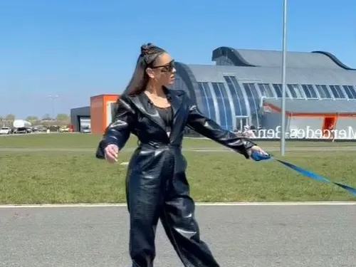 “Cu bestia la plimbare ?” este mesajul scris de Karmen pe Instagram, când a postat înregistrarea cu autoturismul care are 525 CP şi poate ajunge la 100 de km/oră în doar 4 secunde.
