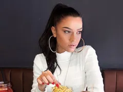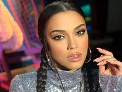 Ea s-a îmbrăcat cu o pereche de pantaloni albi, și-a pus un sutien negru și deasupra o cămașă dungată, pe care a descheiat-o pentru ca burtica săs e vadă sexy în prim plan.